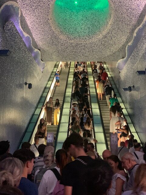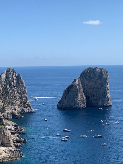 日程はかなりの強行軍で、1日目はナポリの宿に荷物を下ろすと港に向かい、水中翼船でカプリを目指しました。まだ学校が夏休み中だった事もあり、とにかくすごい観光客!