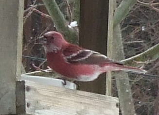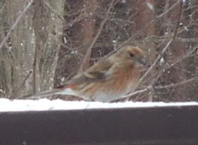 庭の餌台に来たベニマシコ ピンク-雄 茶色-雌(たぶん)