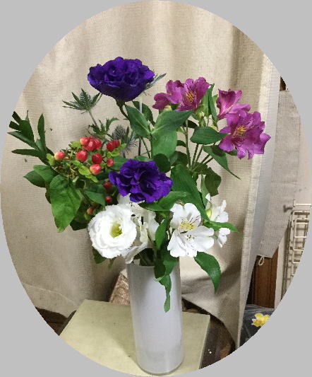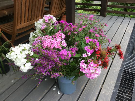 ススケッチ教室の生徒さんが持ってきてくれたバケツ一杯のお花たち