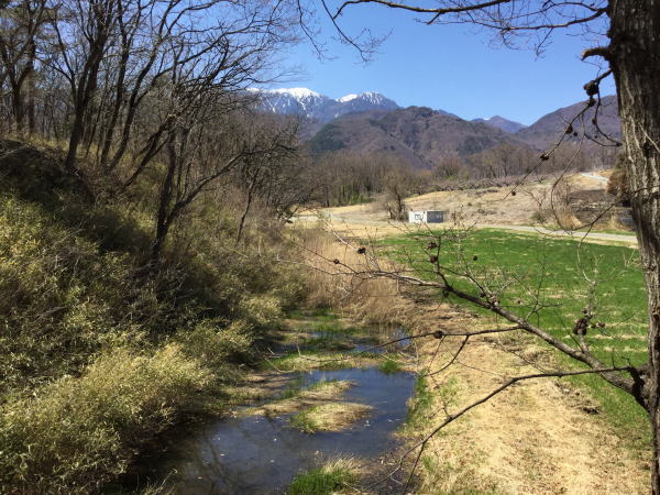 スケッチの仲間と、桃を描きに新府城跡へ。 新府城の堀(2018年4月3日撮影