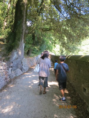 | アッシジに住む奈緒美さん(イタリア便りを 送ってくれる友人)と子供たち ヴァレちゃん、ジュリちゃんと会い、 アッシジを案内してもらった。 ヴァレちゃんがお店におかれたピノキオの穴に 顔を突っ込んでピノキオに変身。 |