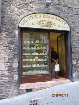 | ジェラート屋さんは大人気。大人も子供も。 | ほとんど看板の類がなく、前に行って初めて ジェラート屋さんだ!とわかる。 |