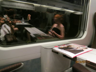 | 電車のなかの様子。 とても遅れると聞いていたイタリアの電車、 発車はほぼ時間どおりだったが、 トンネルの中でストップ。 前の電車がつかえているということで、 ベネチア到着は30分遅れ。 あとで聞いたことだが、 特急が30分以上遅れると特急料金を 返してもらえるということだったが、 言葉の壁は厚い。 |