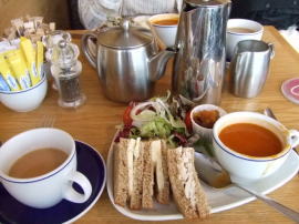 そしておいしい昼食にありついた。 店内では、美しく彩色したコーヒーカップとポットのセットなどがあり、お土産に