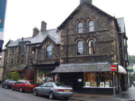 丸円のなかの右の建物(白い窓の方)が、Windermereでの宿です。1860年に建てられた銀行を改造したホテルで