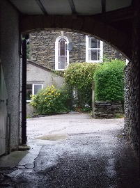 Windermereの町並みと一番右は建物の下をくぐる通路。 くぐったところにも家並みがあった。