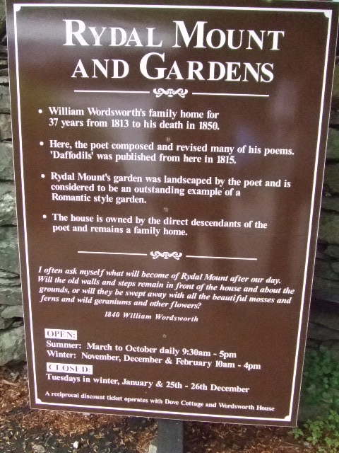 Rydal Mount はワーズワースが1813年から1850年まで37年間暮らした家。その庭はワーズワース自身が設計した。
