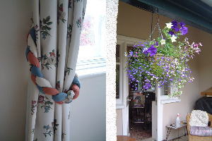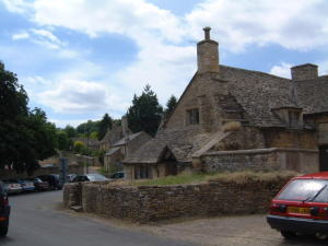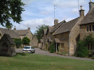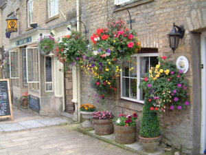 | ストーオンザ・ウォルドの宿の窓から | ストー・オンザ・ウォルドの街 どこも花が美しく飾られている。 |