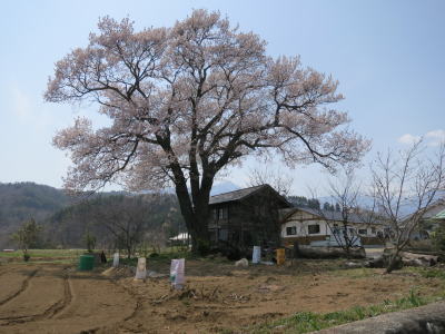 近くの立派な桜を見物しました。