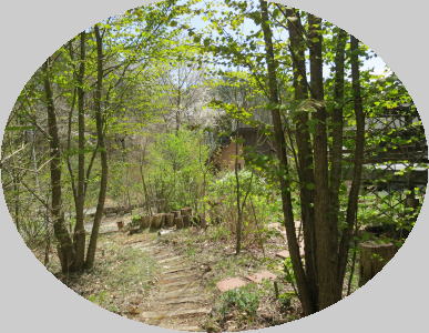 アトリエの庭の新緑。付近の山桜が満開です。