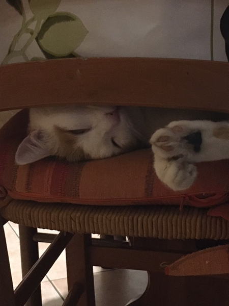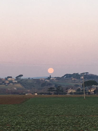 ある日のアッシジ全景 朝のウォーキング中にみた、沈む直前の満月 演技の良い彩雲と思われる光 2月5日、スバシオ山頂に雪が! ミルタお昼寝中 背筋ぴん これぞ生ハム!