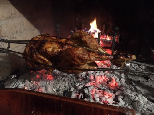 、暖炉で鶏の丸焼き。軟禁生活中でも食料は手に入るし、