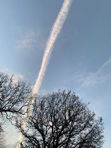 スバシオ山頂に雪 ある朝の空。何が通ったのでしょう?