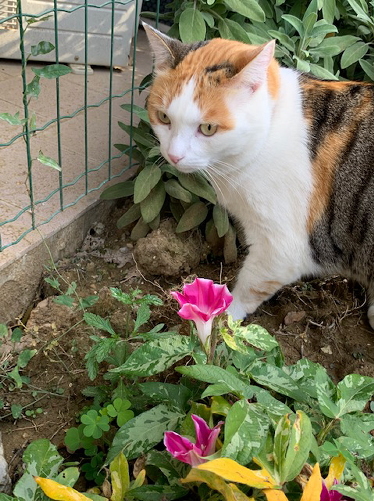 朝顔がまだ咲き続けてくれています!ミルタと共に。