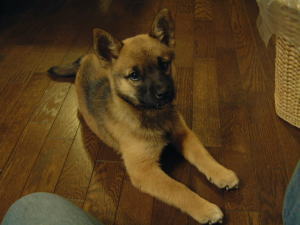 シェパードみたいでしょう? 来たときは、体重1.9キロ 一ヵ月後、体重3.7キロ |